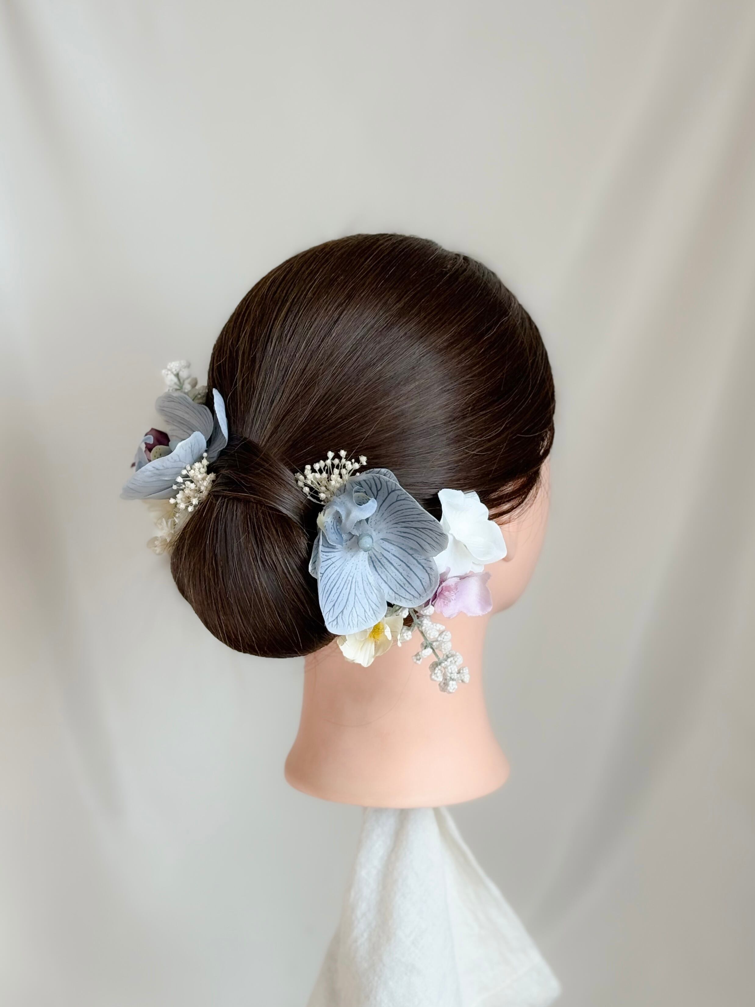 アーティフィシャルフラワー(高品質造花)やプリザーブドフラワーなどで製作した、cuddleオリジナルのお花の髪飾りです。