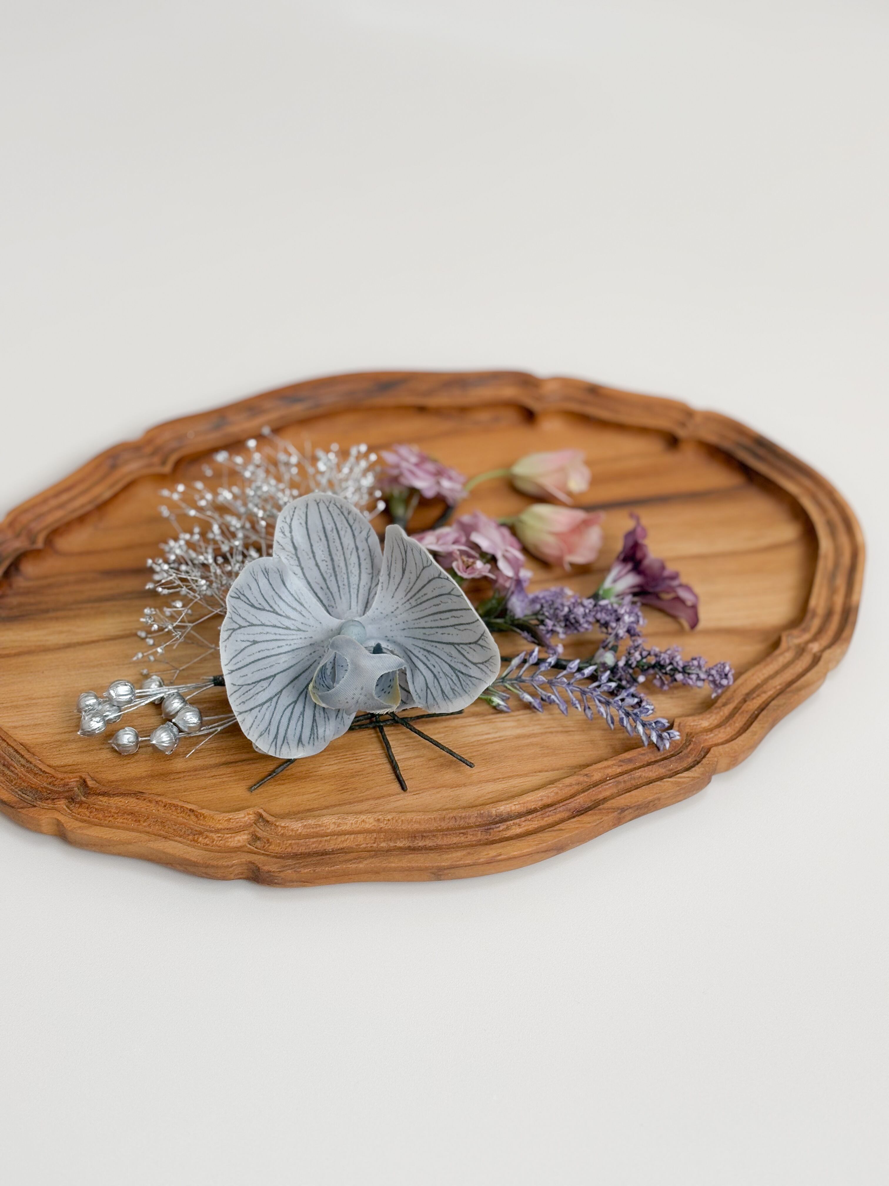 枯れることがないため色持ちがよく、持ち運びやすいことはもちろん、cuddleでは質感や色味のリアリティも備えた高品質のお花だけを使用し、使い勝手の良さだけに留まらない、お花の美しさが映えるような髪飾りに仕上げております。