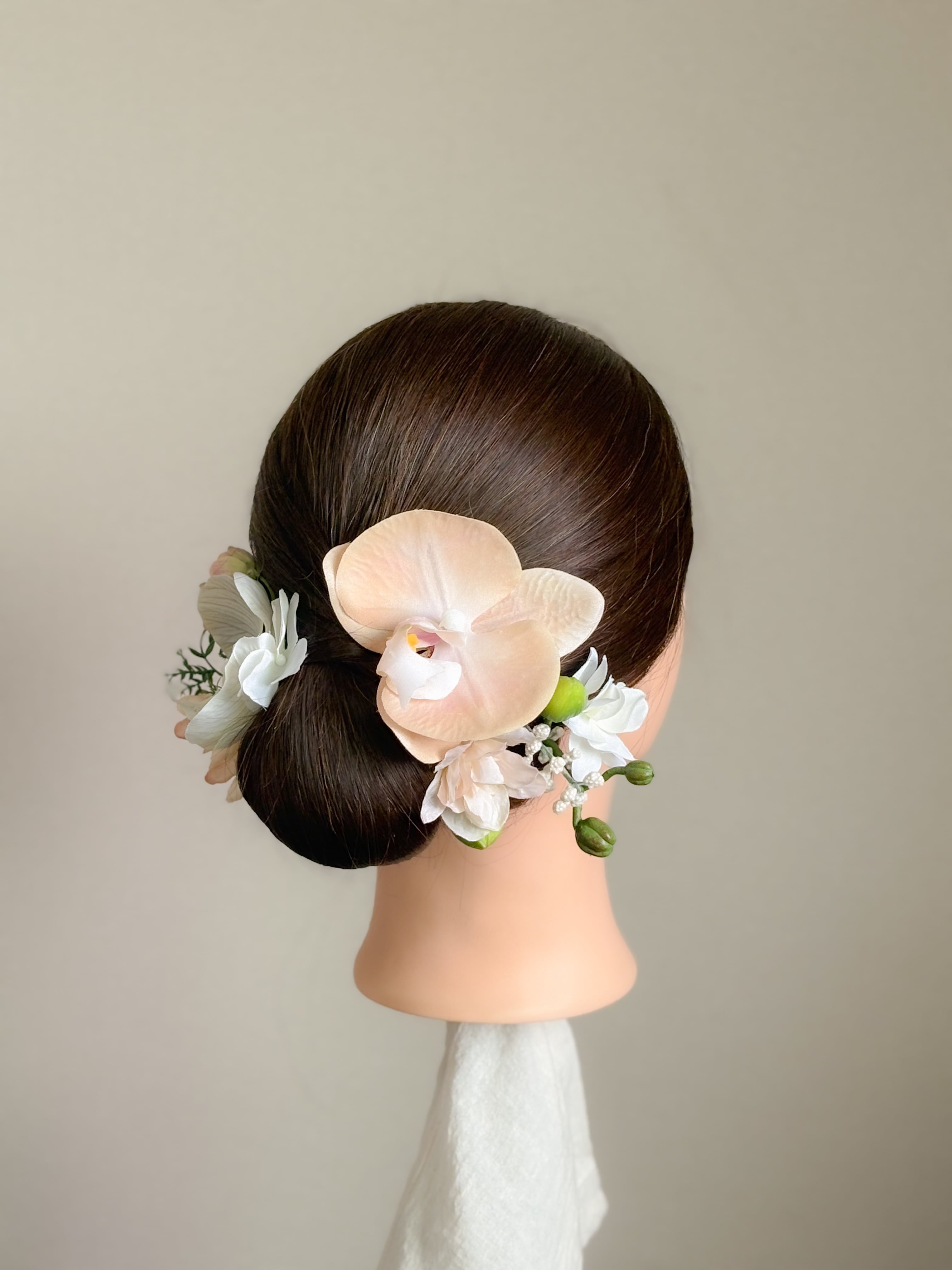 アーティフィシャルフラワー(高品質造花)やプリザーブドフラワーなどで製作した、cuddleオリジナルのお花の髪飾りです。