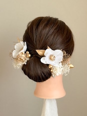 ゴールドとホワイトのお花をたっぷりと使用し、上品に輝く華やかなセットに仕上がっています。