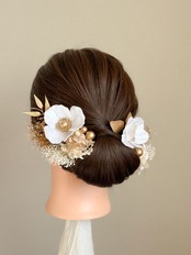 枯れることがないため色持ちがよく、持ち運びやすいことはもちろん、cuddleでは質感や色味のリアリティも備えた高品質のお花だけを使用し、使い勝手の良さだけに留まらない、お花の美しさが映えるような髪飾りに仕上げております。