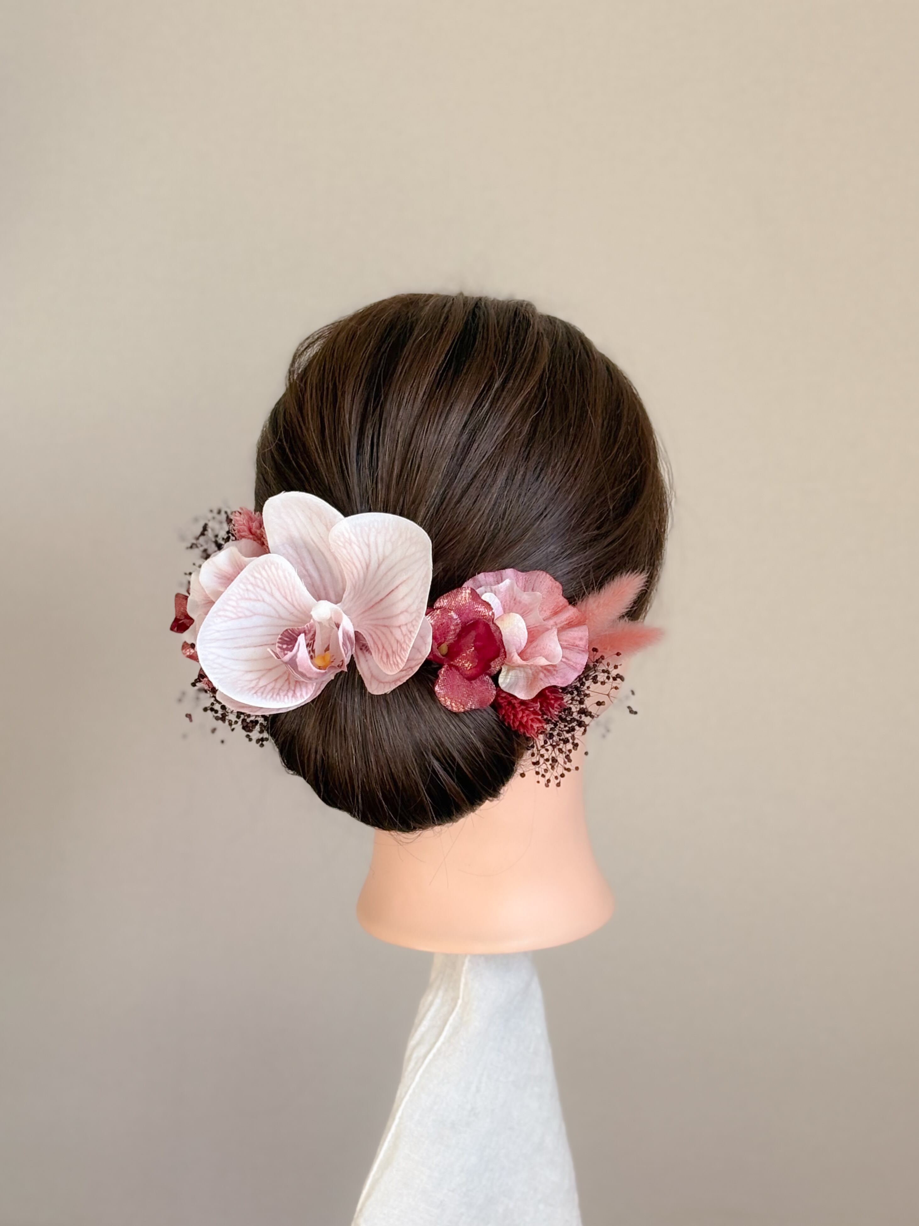 アーティフィシャルフラワー(高品質造花)やプリザーブドフラワーなどで製作した、cuddleオリジナルのお花の髪飾りです。