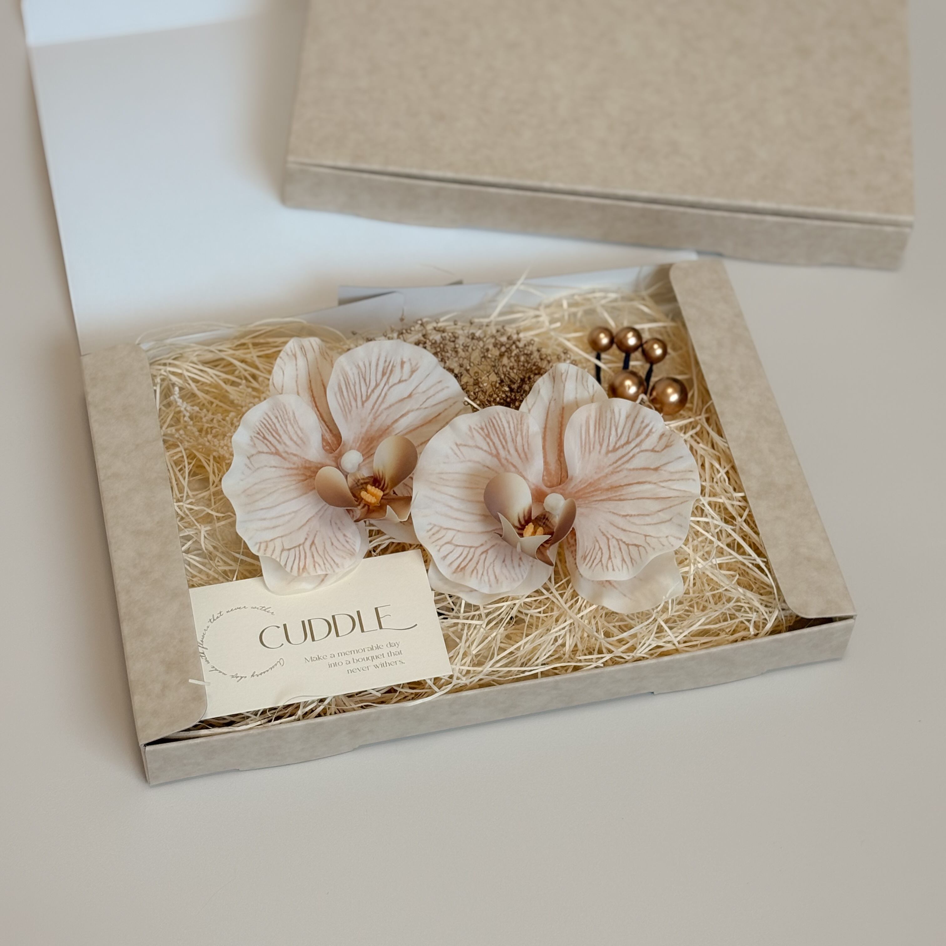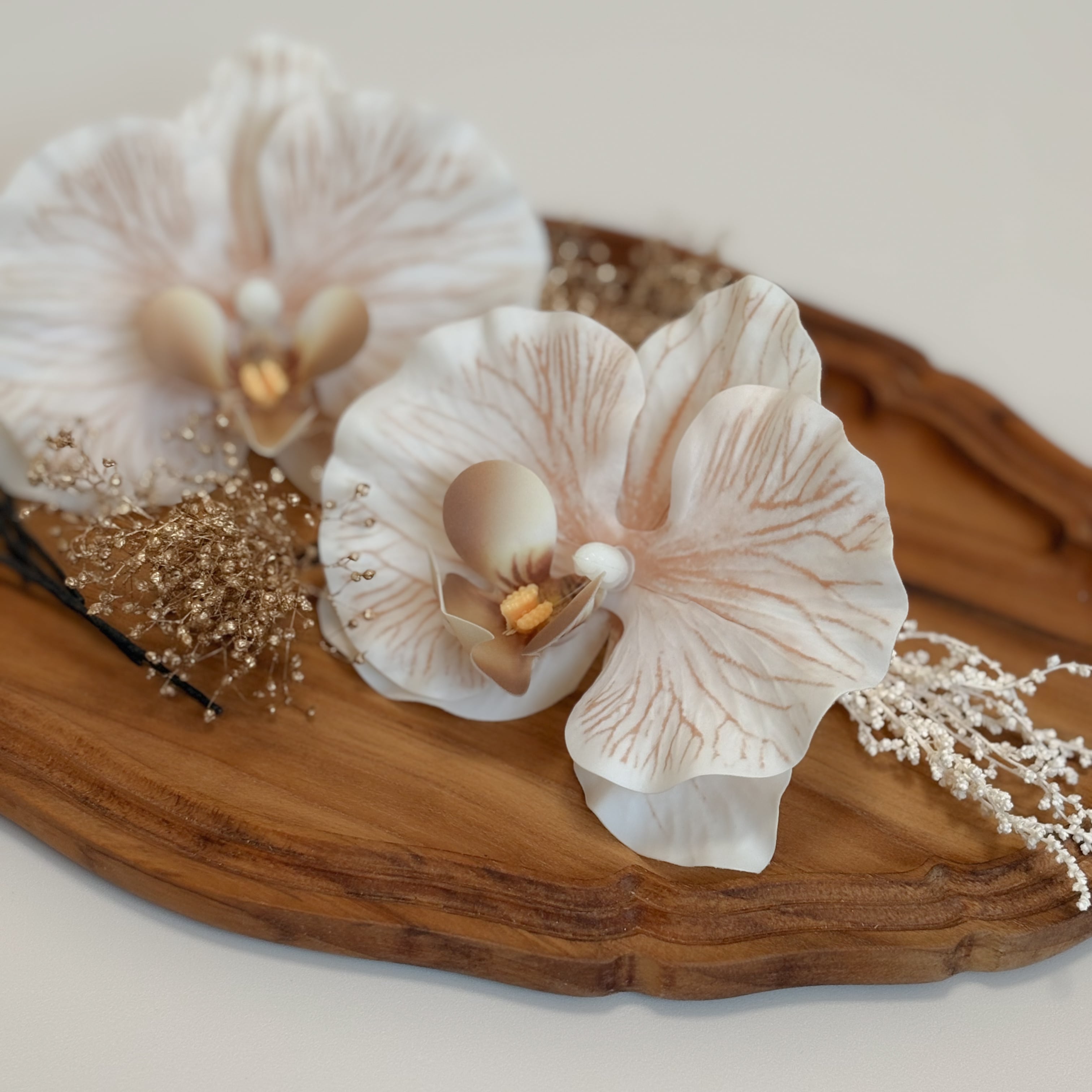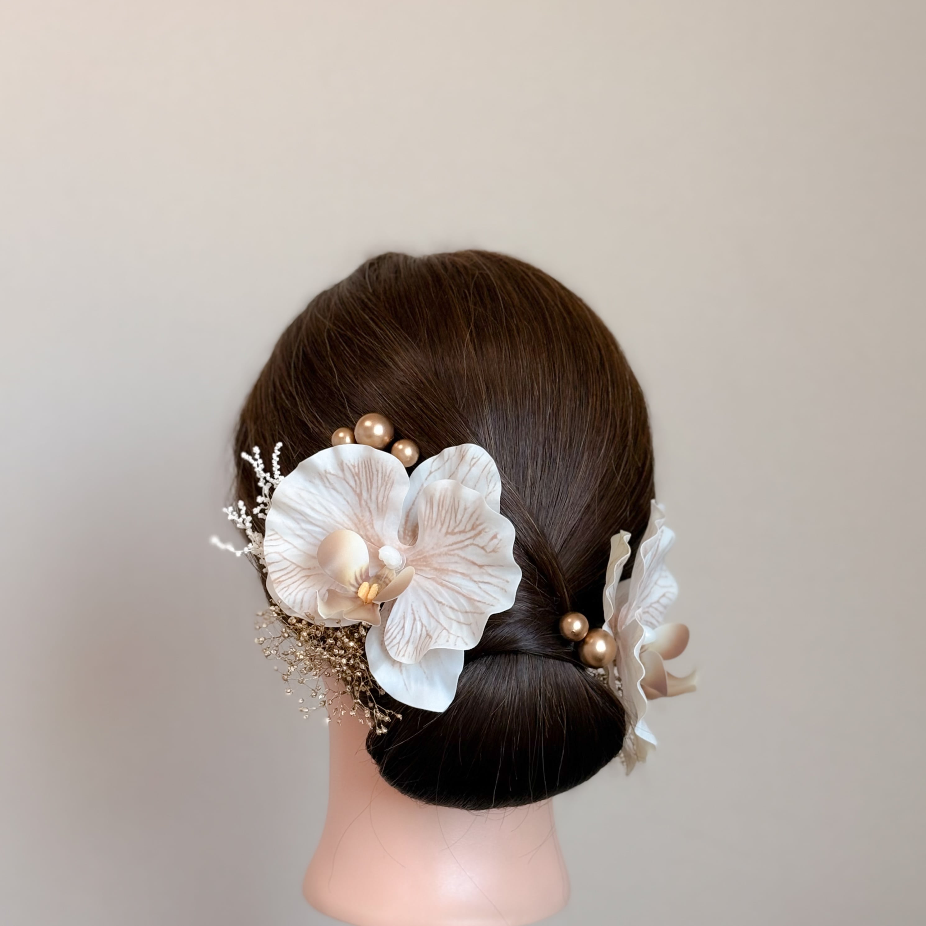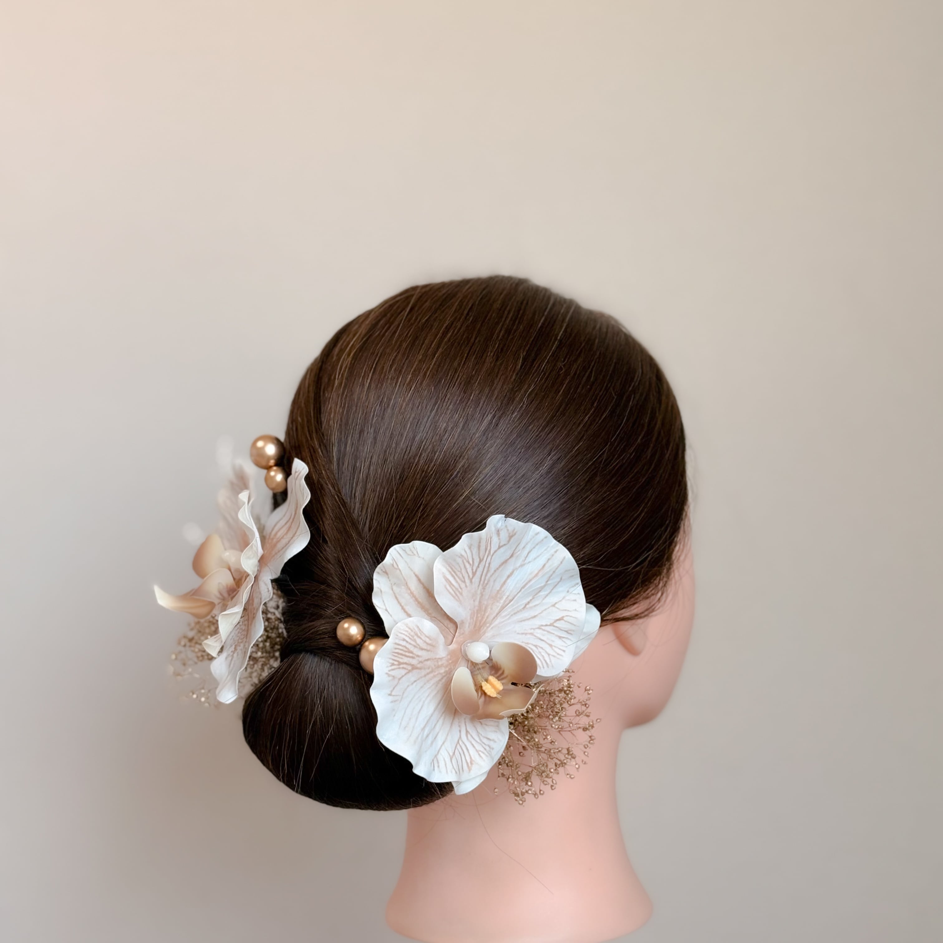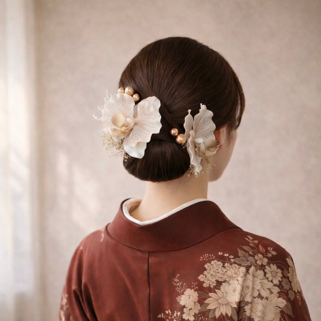 上品な胡蝶蘭の髪飾りセット。
