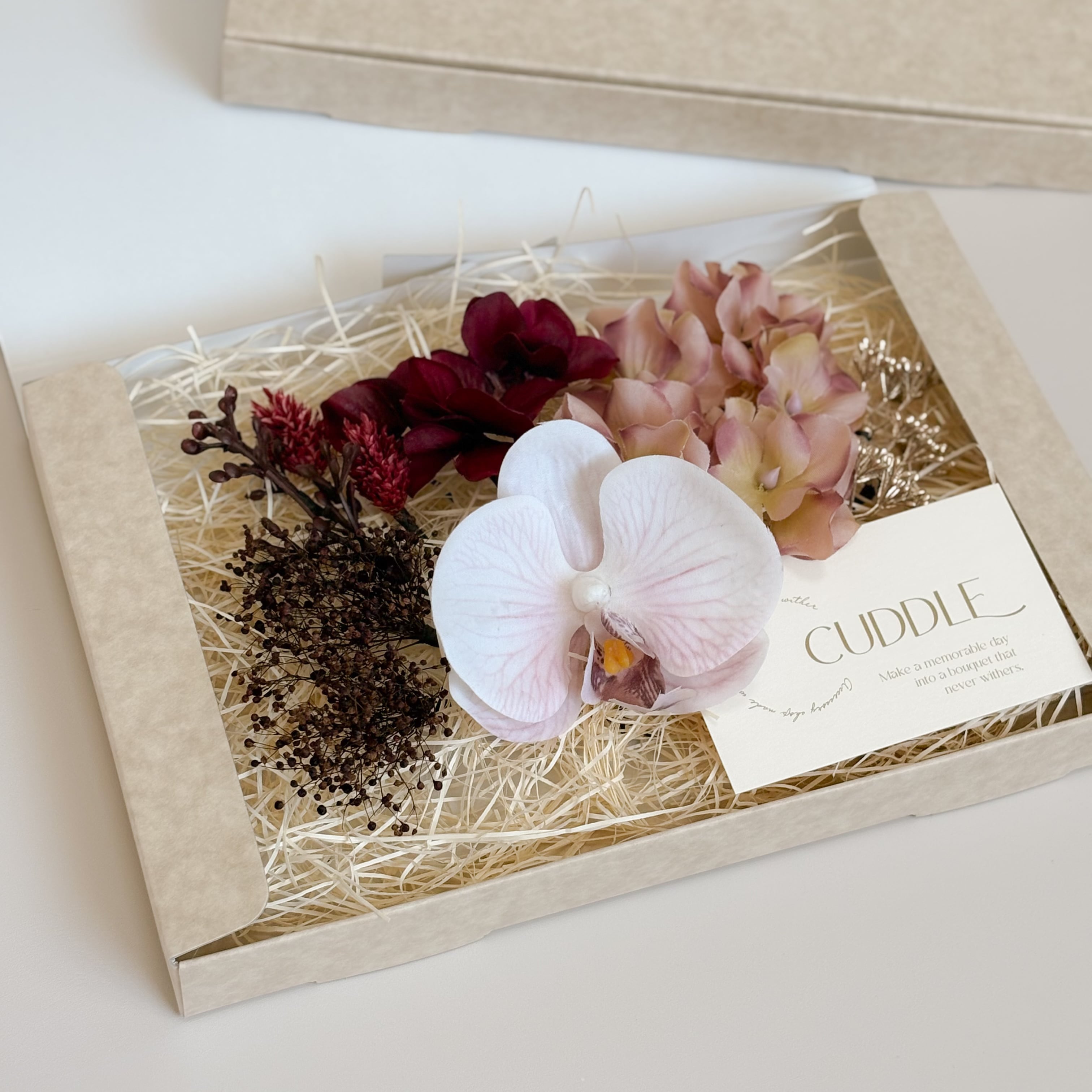 プリザーブドフラワーやアーティフィシャルフラワーを使用しているため、