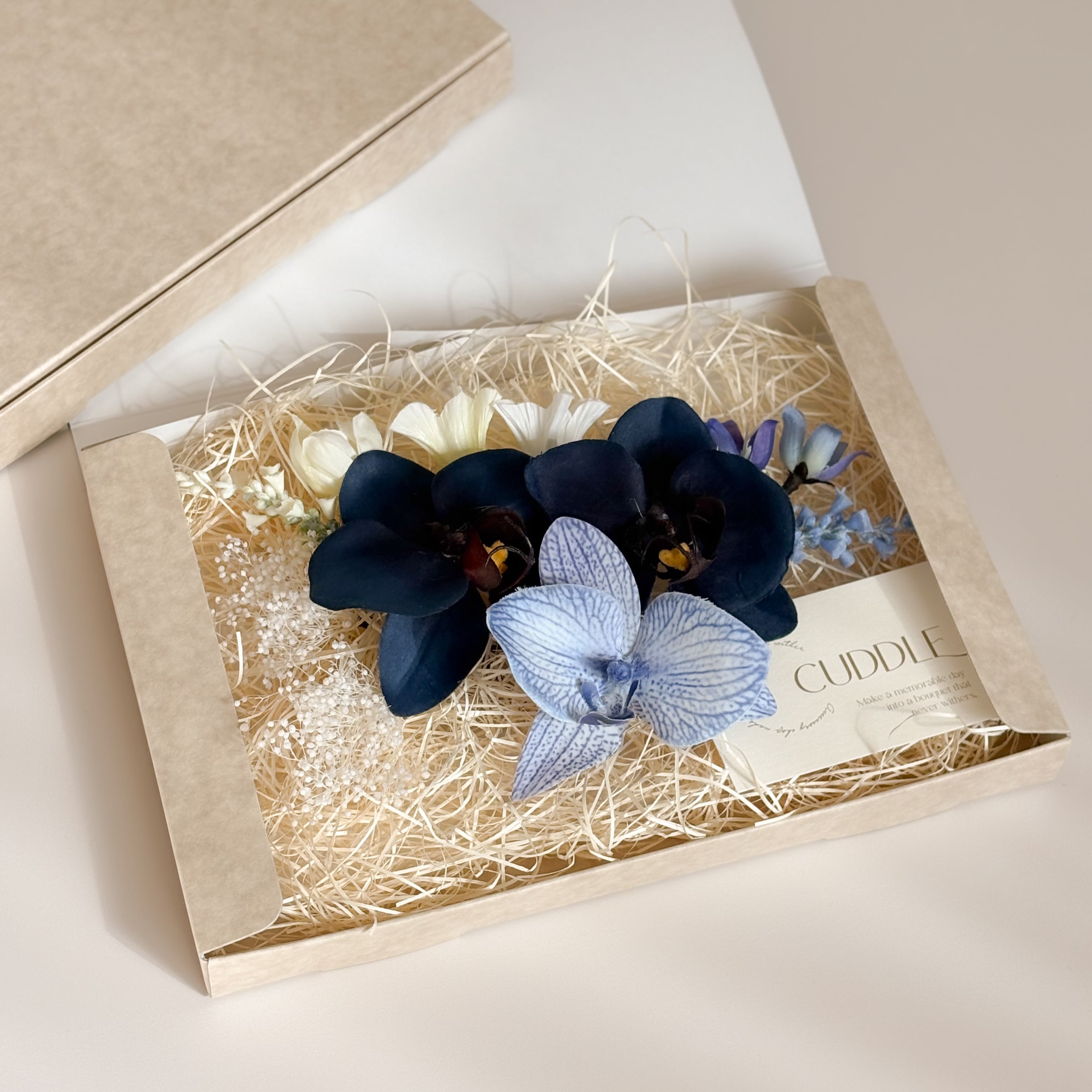 ディープネイビーの胡蝶蘭2輪と