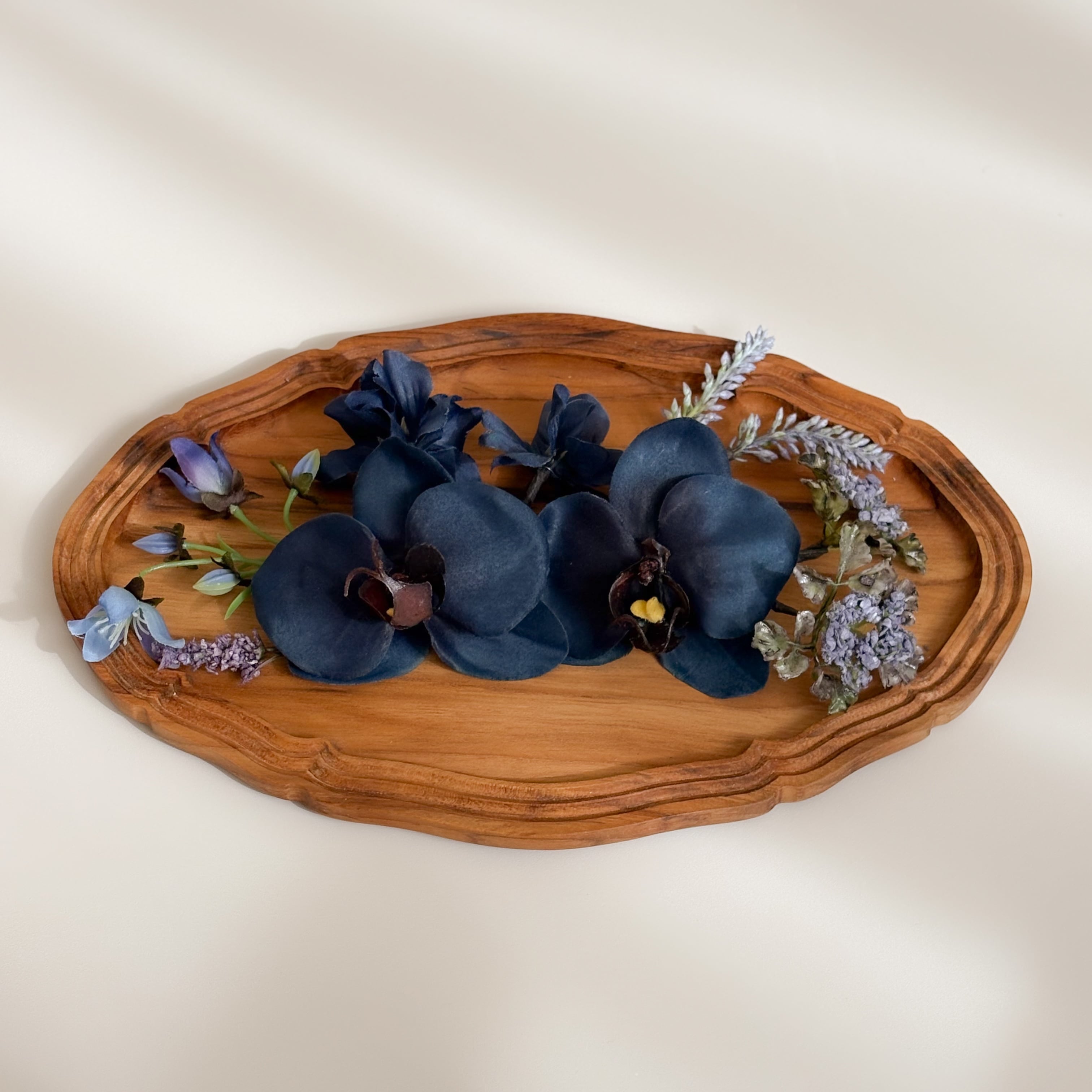 ネイビー〜ブルーの花々でまとめ、