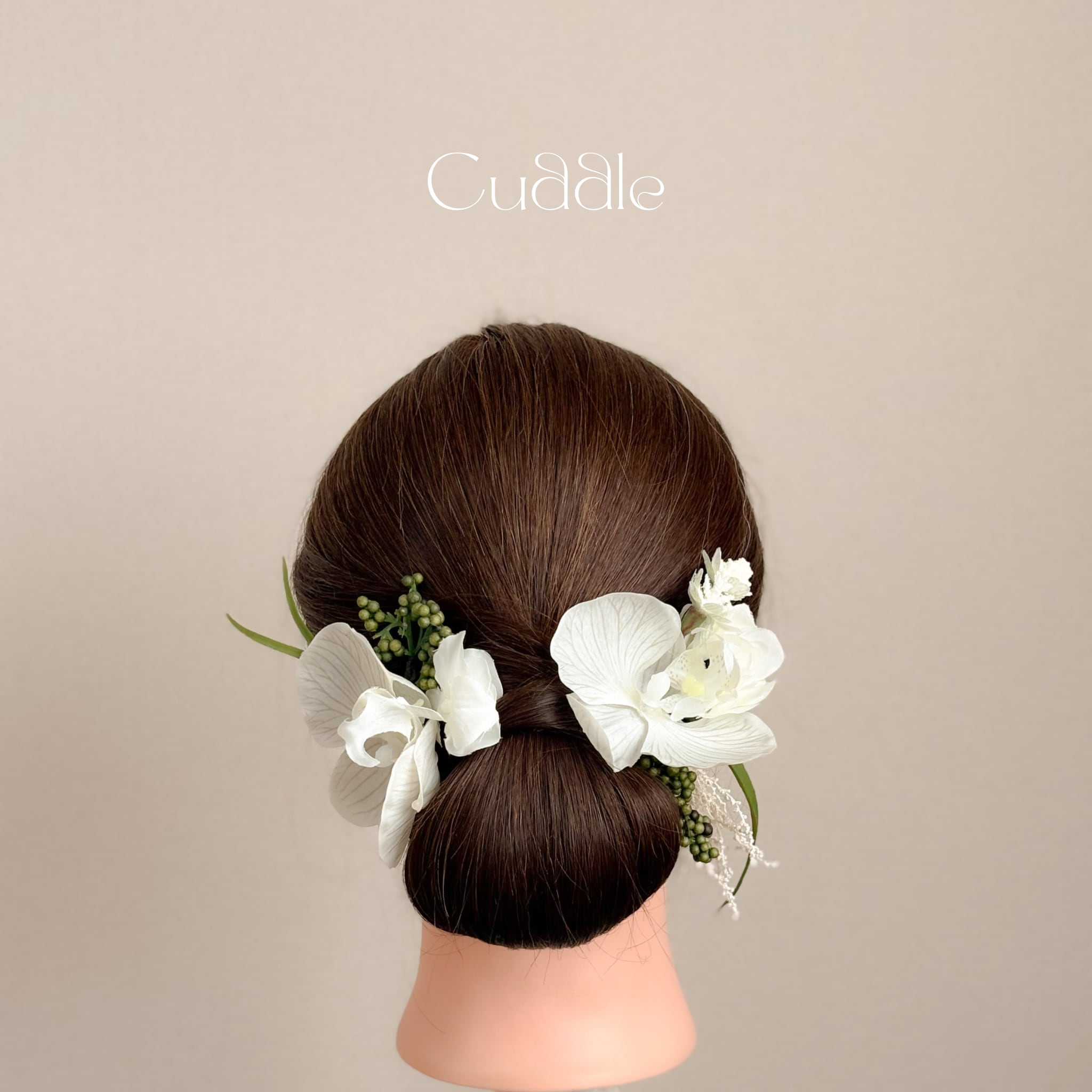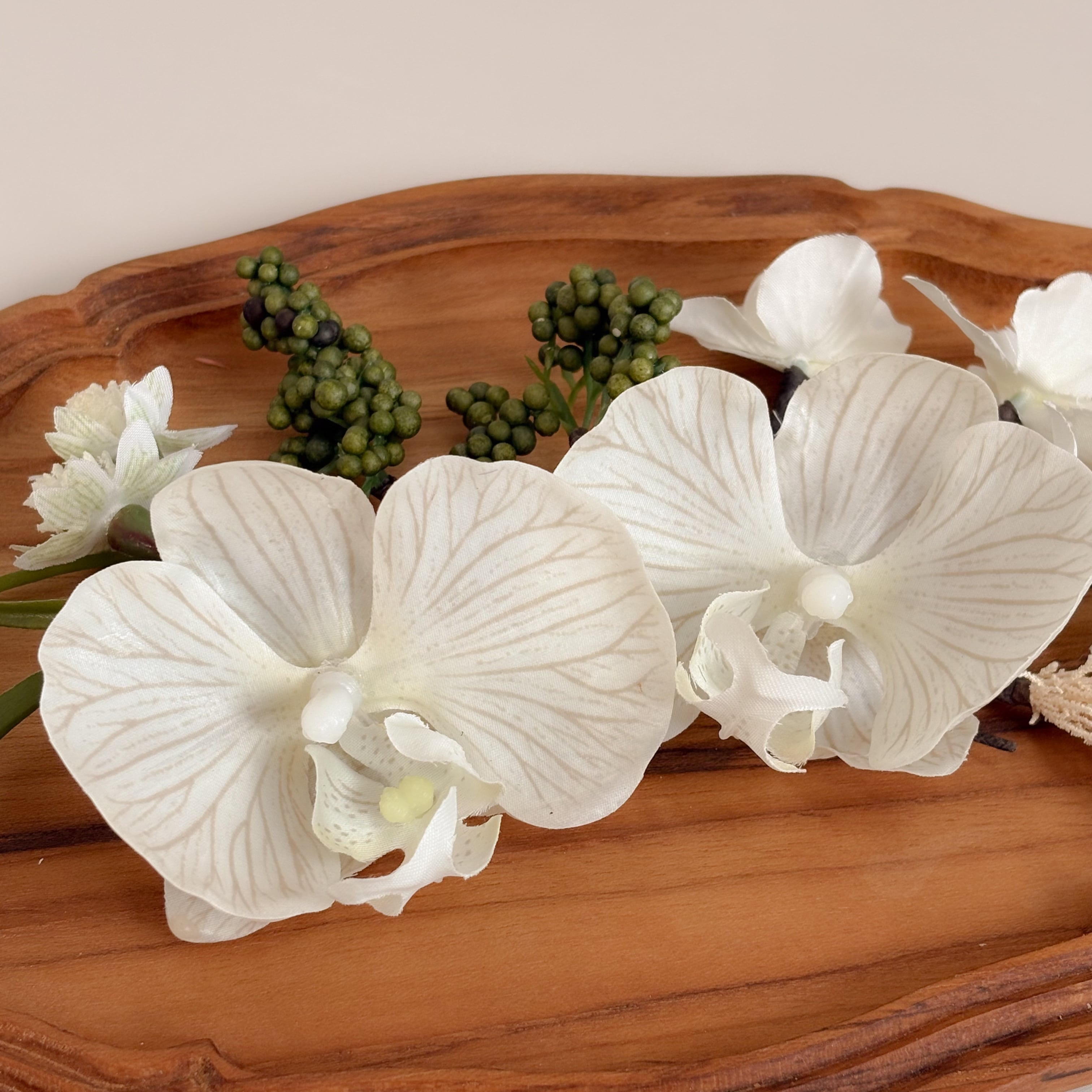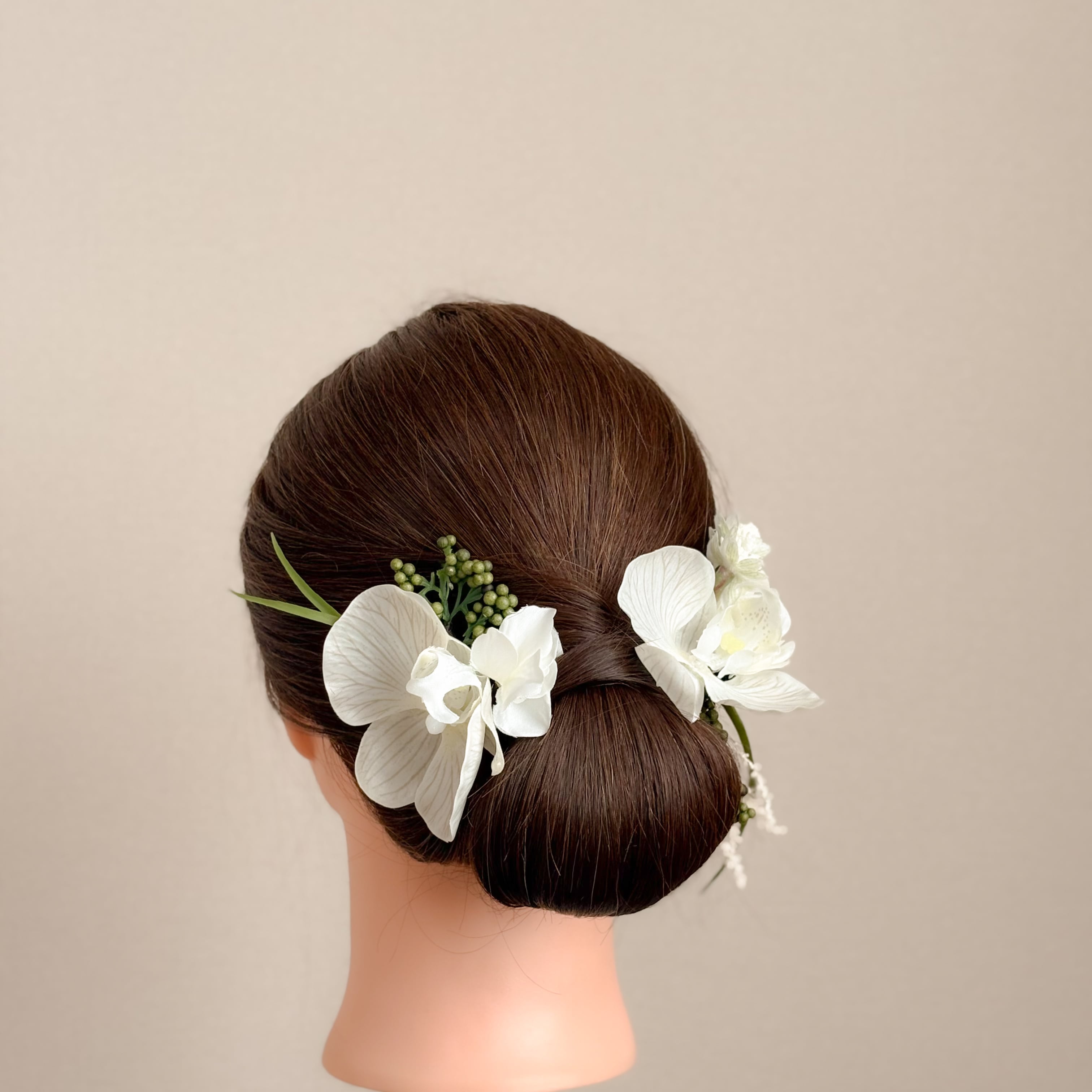 グレージュの花脈が美しい胡蝶蘭がメインの髪飾りセット。