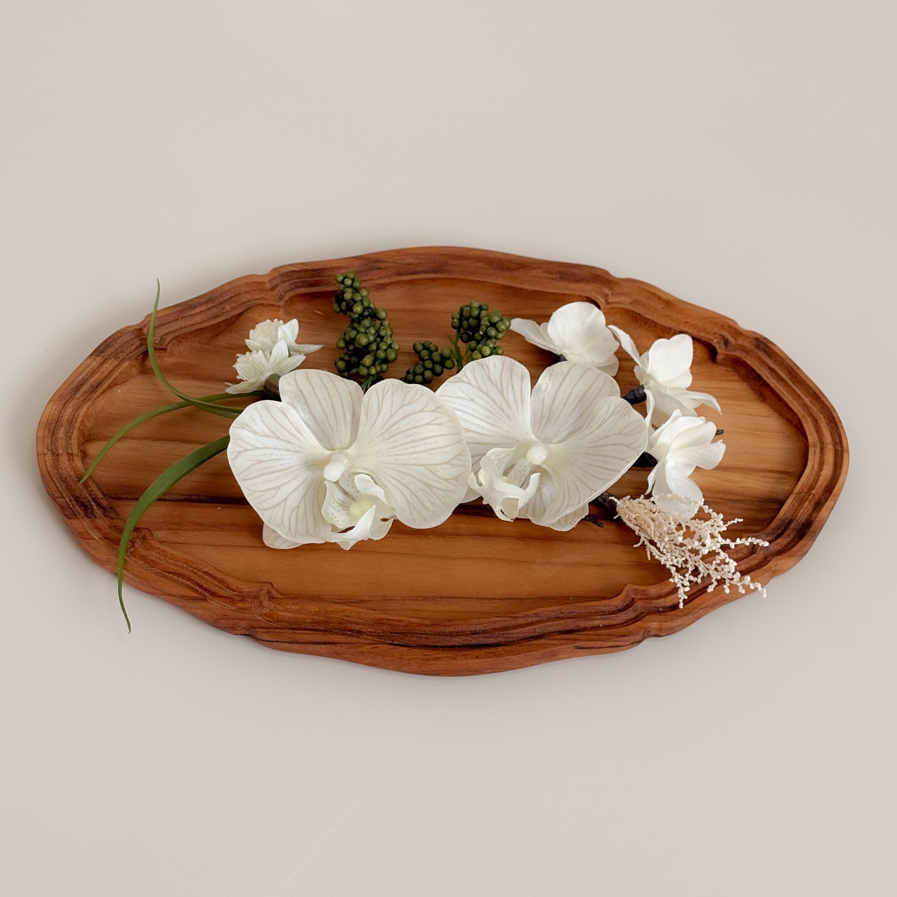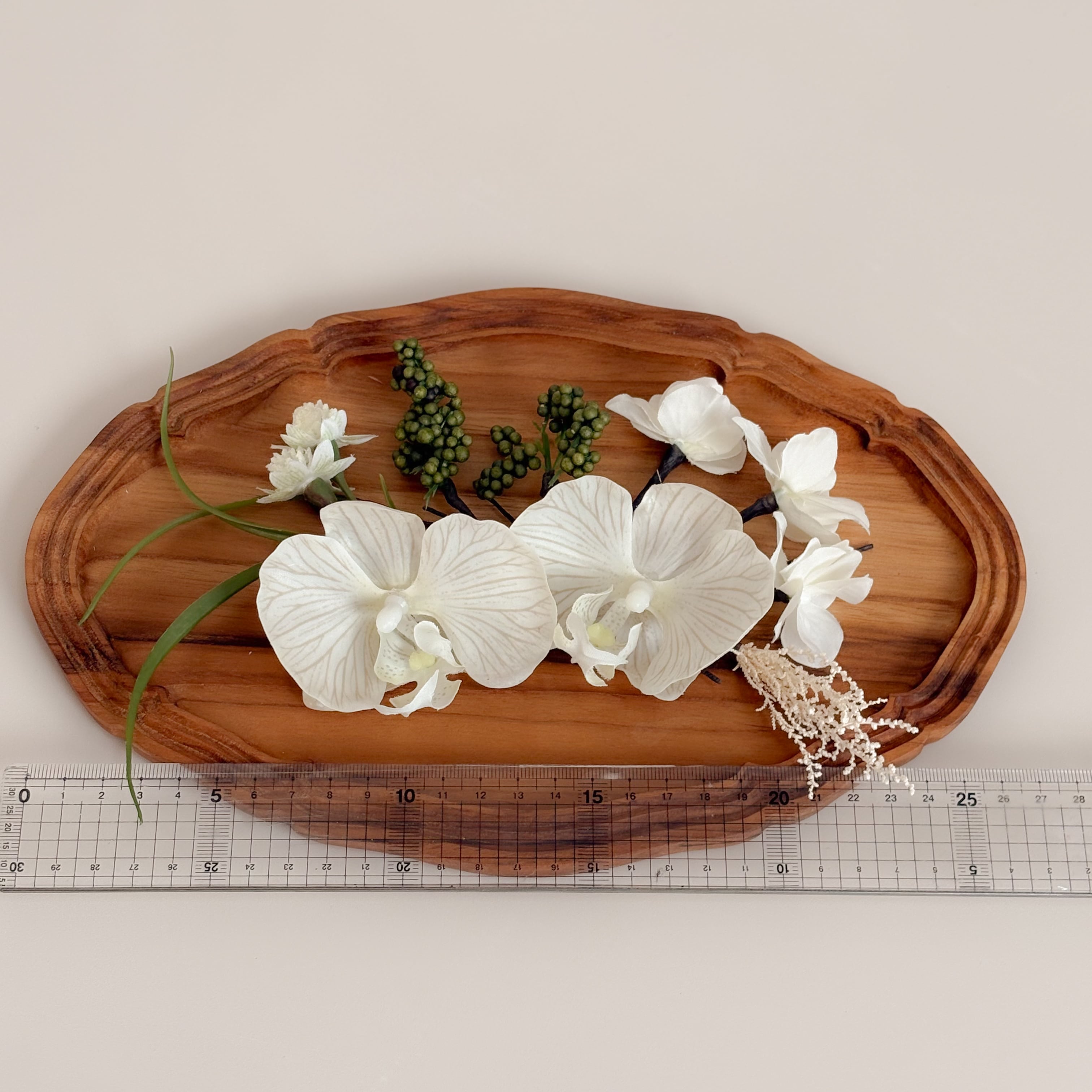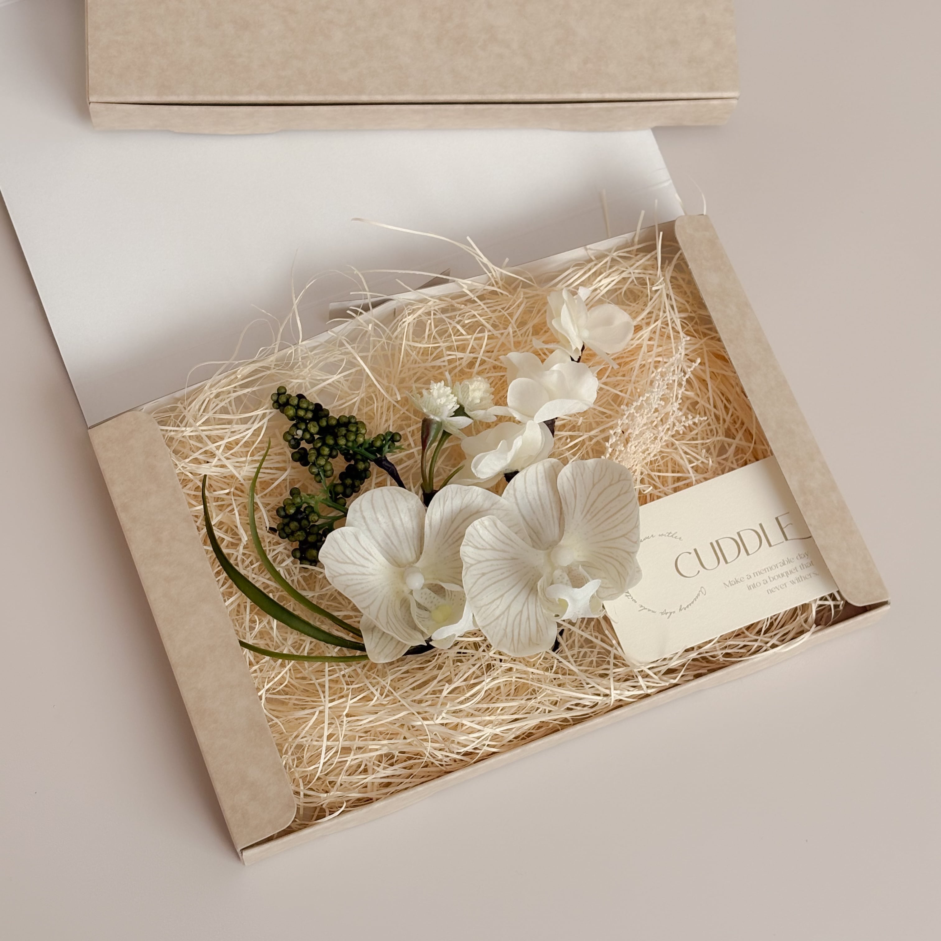 グレージュの花脈が美しい胡蝶蘭がメインの髪飾りセット。