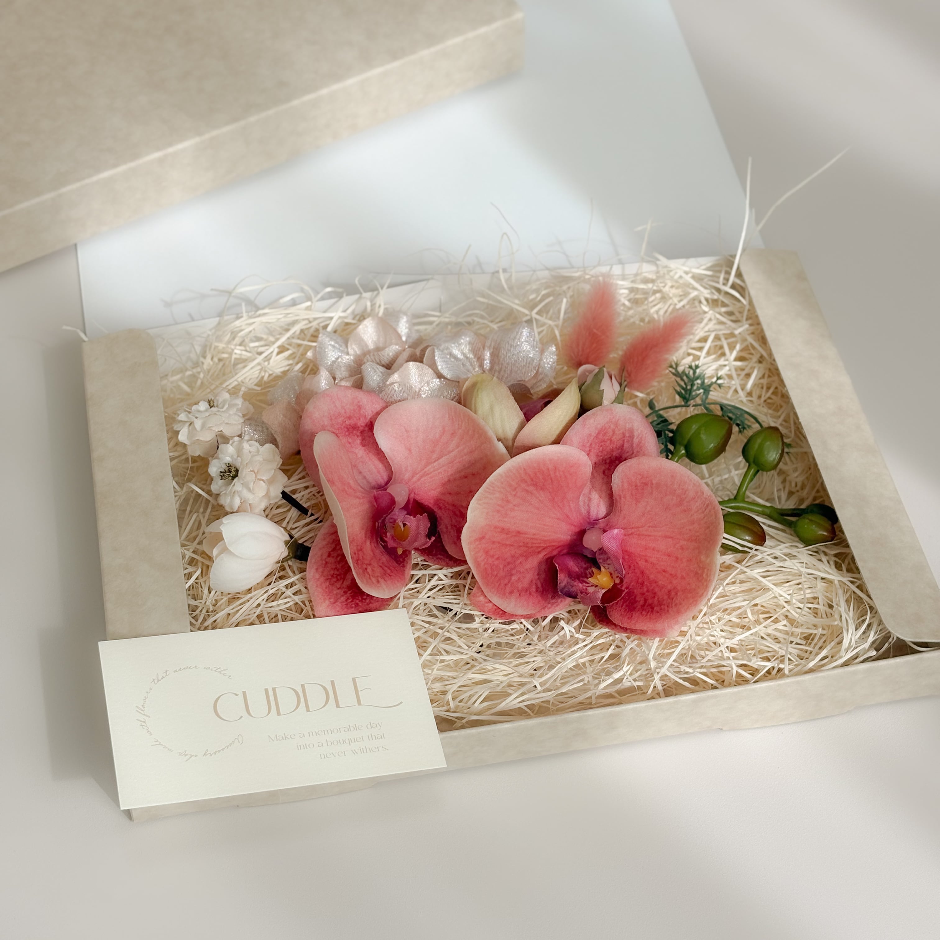 プリザーブドフラワーやアーティフィシャルフラワーを使用しているため、