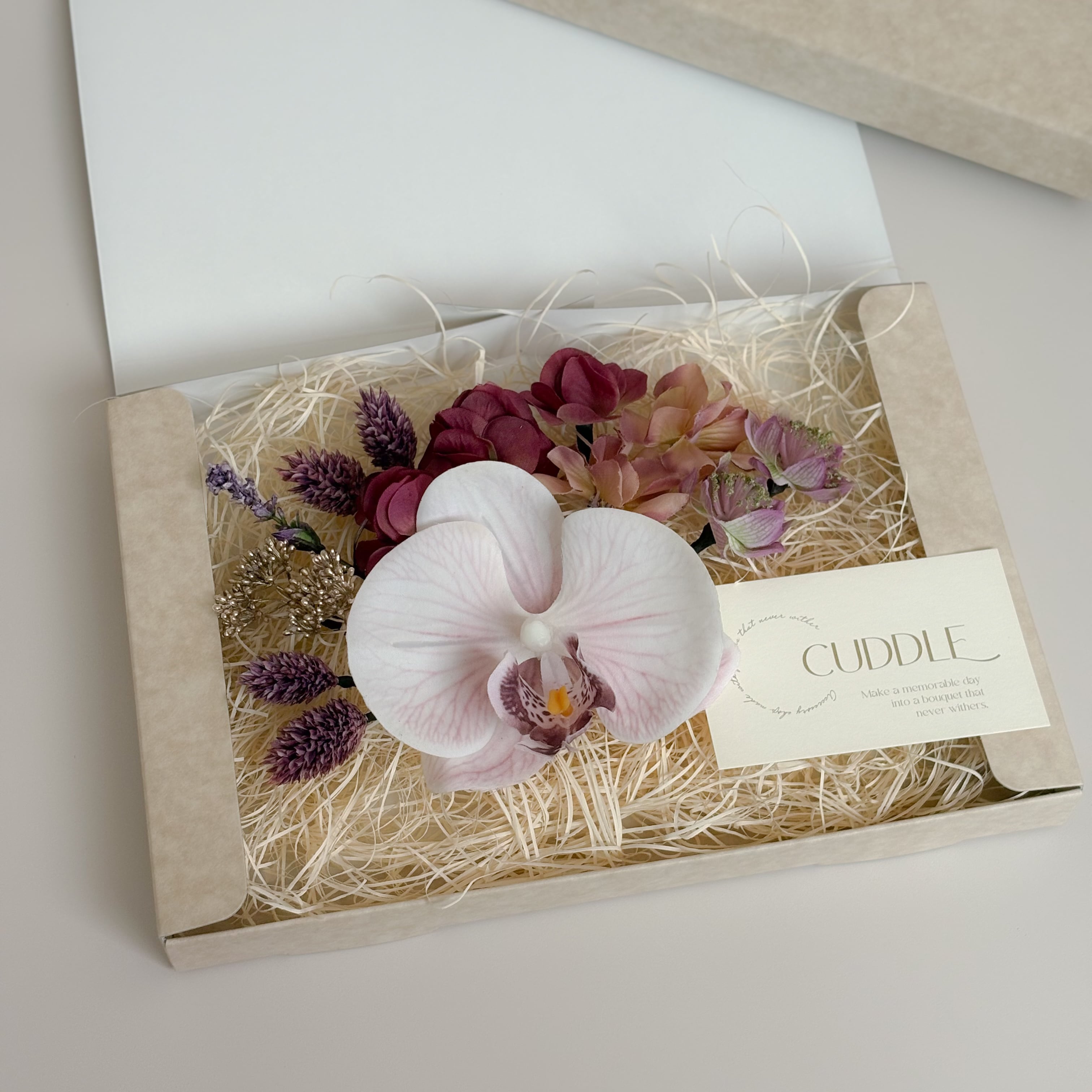 プリザーブドフラワーやアーティフィシャルフラワーを使用しているため、
